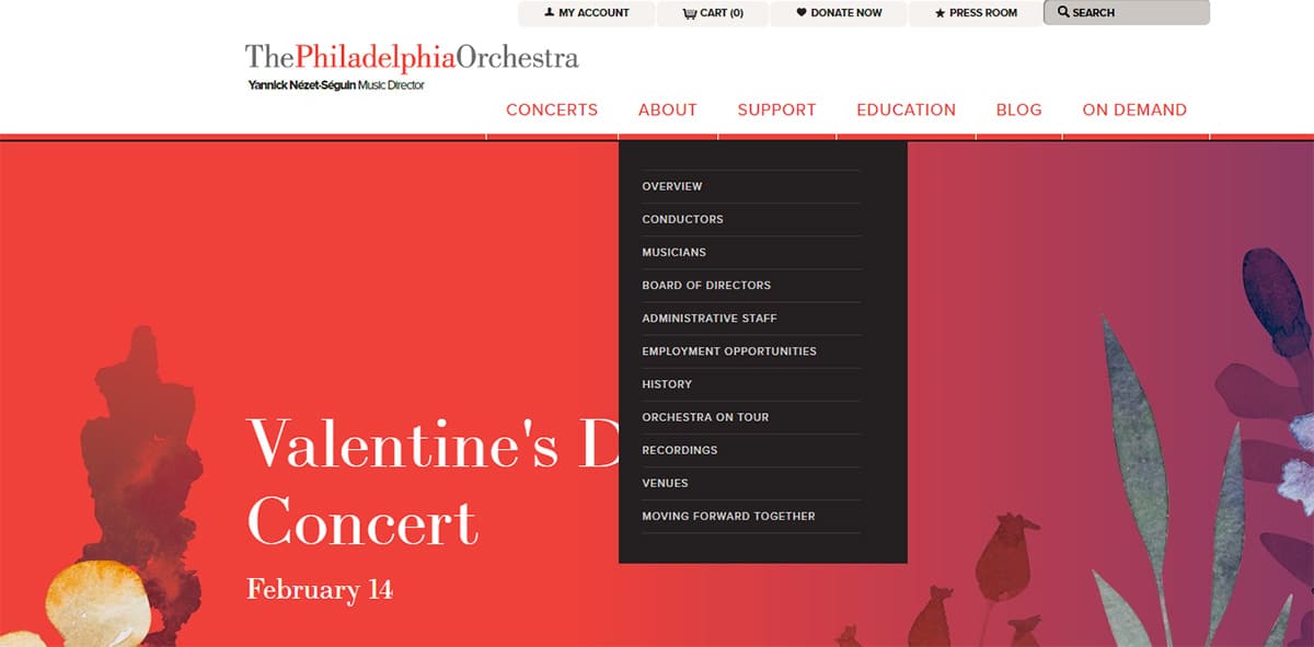 The Philadelphia Orchestra has a fantastic website. Clean, usable, and easy to read. But when you hover any of the dropdown links you’ll notice only the text is clickable. Worst of all their dropdown menus are pretty wide, but the link text is fairly short. I can’t imagine a scenario where margins would be better than padding. By making the links block-level elements they can span 100% of the dropdown menu. This means the user could click anywhere in that link’s box and still visit the page. To me the choice is obvious. If you can increase the click/tap area of links in your dropdown menus then you’ll greatly improve the navigation experience.