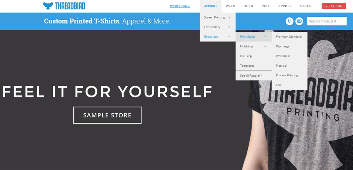 The Threadbird navigation is a fantastic example of this effect in action. Some of their links have sub-menus while others don’t. In fact some of their links have sub-sub-menus which you can only discern by their unique marker next to each link. Threadbird uses the right-pointing double angle quotation mark, simplified to raquo. Web designers prefer this symbol over a single arrow because it’s bulkier and easier to notice at a distance. Plus it holds its shape well even at smaller sizes.